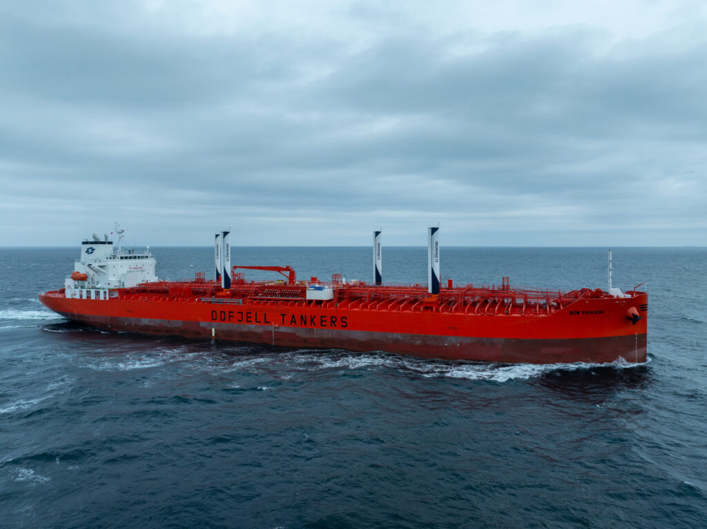 The vessel “BOW ERIKSON” is the first memorable ship in the 40,000-ton deadweight super eco-chemical tanker project. The cargo tank feature duplex stainless steel and 28 segregations configuration incorporating the center cofferdam. Also, the vessel is installed the new hull line without the bulbous bow, the gate rudder system, aerodynamic superstructure, and four vent foils serve as wind-assisted devices on the deck. Finally, the vessel achieved Energy Efficiency Design Index (EEDI) standard of 50% as the latest designed eco-tanker.