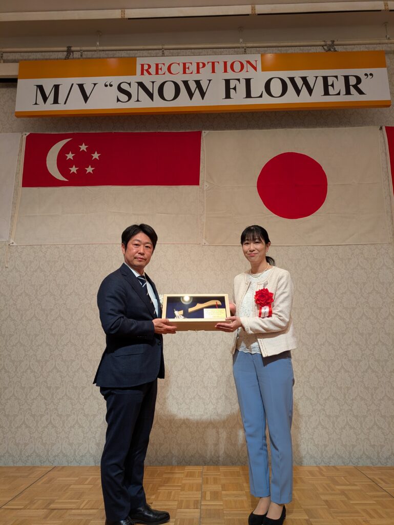 Naming and delivery ceremony for SNo.726/ 630,000cft type refrigerated cargo carrier,”SNOW FLOWER” was held at Hachinohe port.