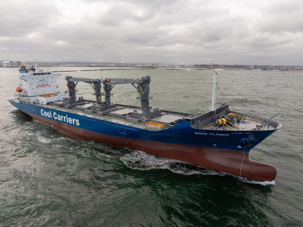 Singaporean owner ordered S726, 630,000cft type refrigerated cargo carrier, named “SNOW FLOWER” and safely delivered to the owner on March 4, 2026. The vessel sailed out to Tokyo for bunkering. After that, she will bound for Tauranga, New Zealand and load fresh kiwi fruits from there to Europe.